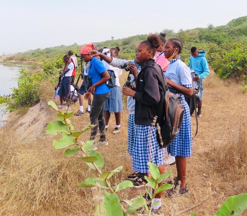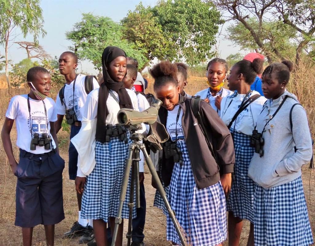 Once schools returned OLF’s Gambia coordinator, Junkung Jadama was able to organise visits for four schools to Gunjur Quarry, one of the best places in the country for wintering Ospreys, and also a wide range of other wetland and woodland species. The groups were led by JJ with Dembo Jatta and Naffie Sarr who were both founding members of the Osprey club at Kartong school. Dembo and Naffie are now wonderful role models for the younger students because they are making good progress towards a career in nature conservation. Both have been developing their skills at Kartong Bird Observatory (KBO) and Dembo, who is part of the Evolving Conservation Leaders Group, secured a scholarship to the African Leadership University in Rwanda to study for a degree in Global Challenges, specialising in Conservation Biology. After completing the first term remotely, Dembo travelled to Rwanda soon after the fieldtrips, to begin studying in person. Naffie, meanwhile, has continued to gain experience at KBO and is currently undertaking an Internship as a Coastal Observer for the National Environment Agency in The Gambia. She is also participating in our latest Becoming a Conservation Leader programme.